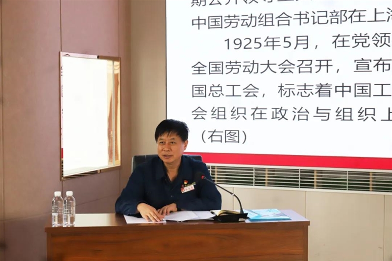 宣講中,趙春棠以《從黨領(lǐng)導(dǎo)中國工人運(yùn)動(dòng)的百年歷史中汲取奮進(jìn)力量》為題,從中國共產(chǎn)黨領(lǐng)導(dǎo)工人運(yùn)動(dòng)的百年歷程、中國共產(chǎn)黨領(lǐng)導(dǎo)工人運(yùn)動(dòng)的理論探索、百年中國工人運(yùn)動(dòng)的啟示體會(huì)三方面進(jìn)行了一場生動(dòng)的宣講。并與參會(huì)人員進(jìn)行了黨史知識(shí)互動(dòng)問答,進(jìn)一步引導(dǎo)廣大黨員干部傳承紅色基因,厚植為民情懷,切實(shí)為職工辦好事、辦實(shí)事、解難題。