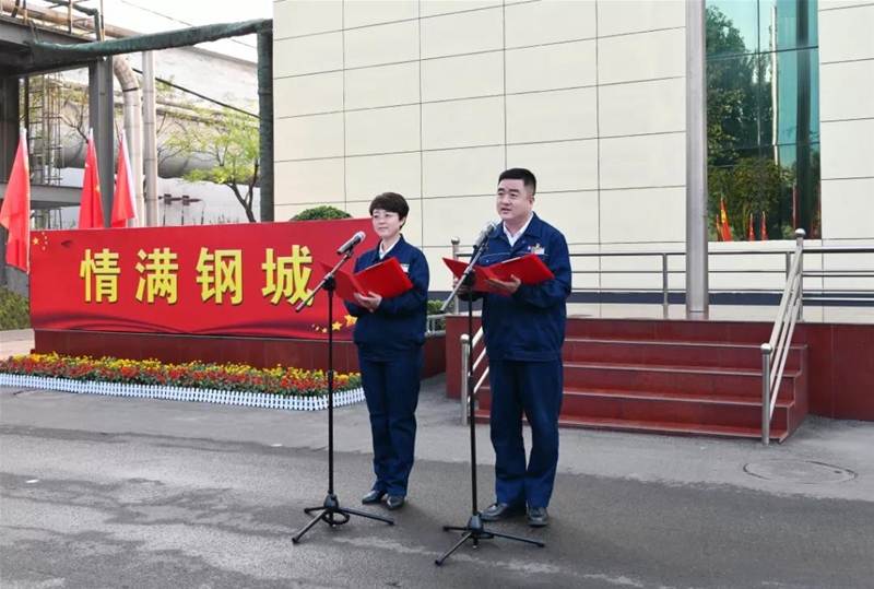 隨后,伴著悠揚(yáng)激情的音樂,兩名職工共同朗誦了《情滿鋼城 禮贊國慶》,歌頌偉大祖國72年來取得的舉世矚目的輝煌成就,表達(dá)了對祖國母親最美好祝愿,以及全力奮戰(zhàn)金色十月,打贏生產(chǎn)經(jīng)營翻身仗、爭氣仗的堅定信心。