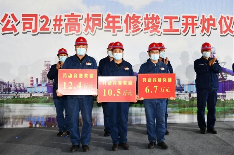 儀式前陳驍向主要生產單位發(fā)放了2021年12月份勞動競賽獎勵。龍鋼公司黨委副書記、總經理李都宏在儀式上簡要介紹了2#高爐年修情況。