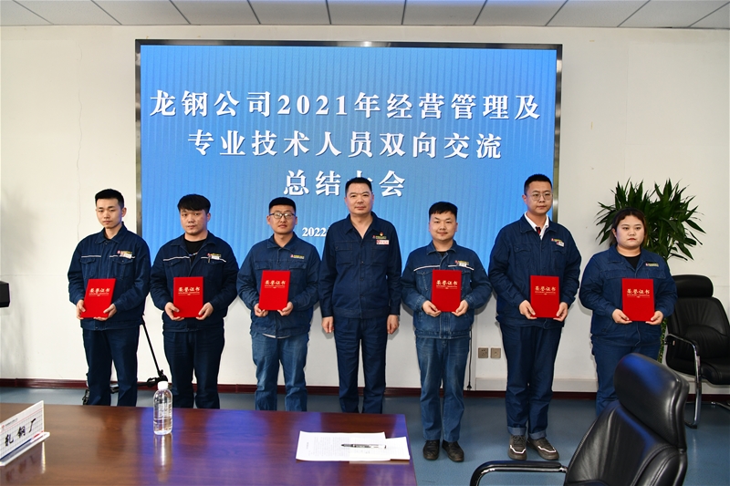 會上還匯報了雙向交流工作,宣讀了《關(guān)于表彰龍鋼公司2021年度經(jīng)營管理及專業(yè)技術(shù)人員雙向交流優(yōu)秀學(xué)員的決定》,對優(yōu)秀學(xué)員進(jìn)行了表彰。同時優(yōu)秀學(xué)員代表分享了雙向交流期間的學(xué)習(xí)情況與工作體會。