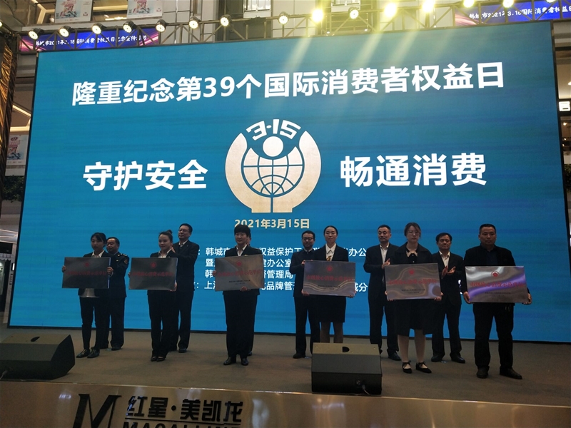 3月15日,韓城市舉辦2021年“3.15” 國(guó)際消費(fèi)者權(quán)益日紀(jì)念宣傳活動(dòng),為全市36家放心消費(fèi)示范代表單位進(jìn)行了授牌。龍鋼綜合服務(wù)公司作為獲獎(jiǎng)單位之一,榮獲2020年度“韓城市放心消費(fèi)示范單位”殊榮,并受到了表彰。