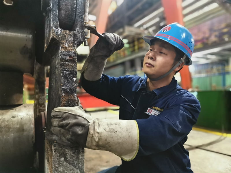 一次搶修作業(yè),一個流的鋼水漏到輥子上無法轉動,噴淋管噴咀堵塞,再加上兩邊1000多度的鋼坯還在生產,100多度的水蒸氣彌漫在整個狹小的空間中。為了保證生產,他毫不猶豫,直接拿著毛巾把臉裹起來就沖了進去,卸噴咀、清粘鋼……一路走來,這樣的場景,他經歷了許多次,但他從不畏懼高溫和困苦,精心守護著連鑄的安全生產。