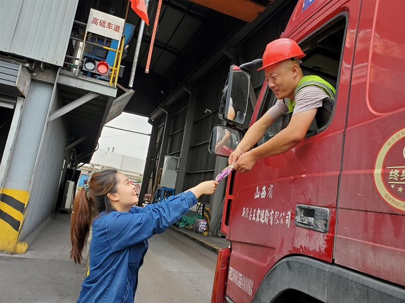 采樣站是公司對外服務的窗口單位,每天面對往來的司機,她的臉上沒有表現(xiàn)出絲毫不耐煩,而是耐心地給每一個前來詢問的司機答疑、解決各種問題,用實際行動將“首問負責制”落到實處。服務在窗口,微笑在人心。自入伏以來,氣溫驟升,暑氣逼人。她卻不懼炎熱,經(jīng)常在大中午抱著一堆雪糕出現(xiàn)在等待排隊采樣的車流中。“辛苦了,給您雪糕降降溫。”她年輕的臉上洋溢著真誠的笑容,為司機師傅們送去了夏日清涼,溫暖了每個人的心。