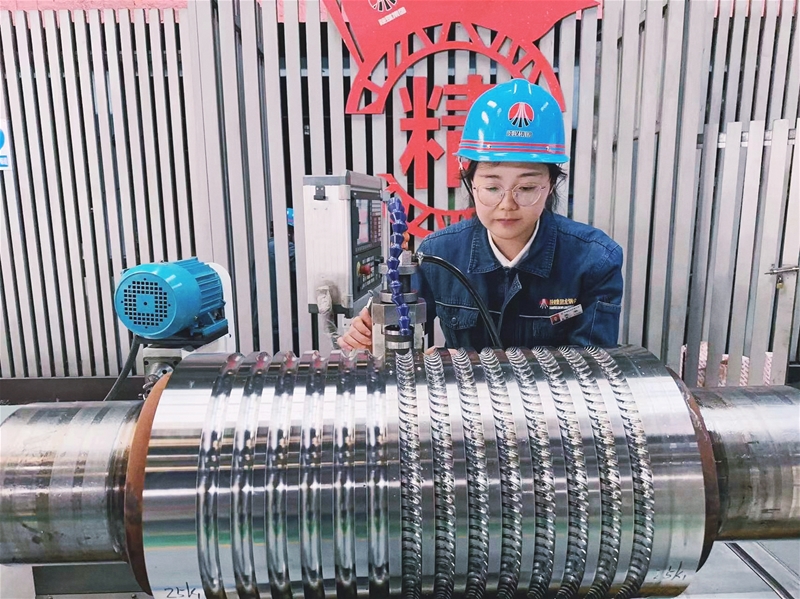 說(shuō)起鋼鐵工人,印象中都是有力的硬漢,但在十里鋼城還有另一道明媚俏麗的風(fēng)景——機(jī)加女工。她在男人扎堆的機(jī)械加工領(lǐng)域,巾幗不讓須眉,方方面面不輸男兒。她就是軋鋼廠(chǎng)生產(chǎn)準(zhǔn)備作業(yè)區(qū)數(shù)控螺紋銑工——張華。