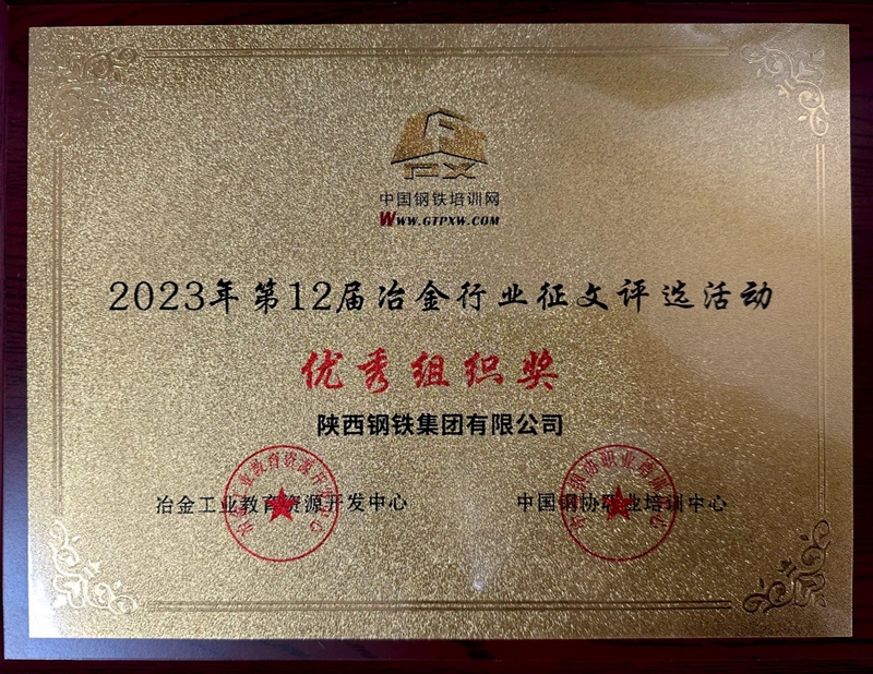 近日,由冶金工業(yè)教育資源開發(fā)中心、中國鋼協(xié)職業(yè)培訓(xùn)中心舉辦的第12屆冶金行業(yè)論文評選活動和第12屆鋼鐵行業(yè)職工培訓(xùn)和職業(yè)教育優(yōu)秀多媒體課件大賽評選結(jié)果揭曉。陜鋼集團(tuán)榮獲2023年第12屆冶金行業(yè)征文評選活動優(yōu)秀組織獎。陜鋼集團(tuán)、龍鋼公司分別榮獲2023年第12屆鋼鐵行業(yè)多媒體課件評選活動優(yōu)秀組織獎。同時陜鋼集團(tuán)共有55篇個人征文獲獎,其中一等獎1個,二等獎7個,三等獎15個,優(yōu)秀獎32個。