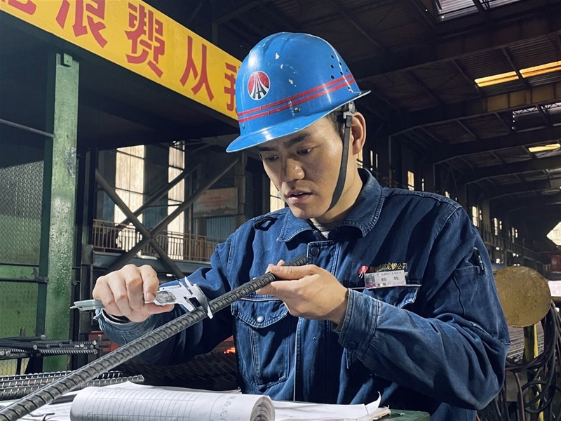 軋鋼工是軋線上的“眼科醫(yī)生”,他們的工具包可以檢測“毫厘”之間的微差。游標(biāo)卡尺、測溫槍、樣棒等,掌握軋制工藝及控冷工藝參數(shù),每十分鐘進(jìn)行一次料型測量,對負(fù)差調(diào)整做出正確決策,確保過程精準(zhǔn)管控。