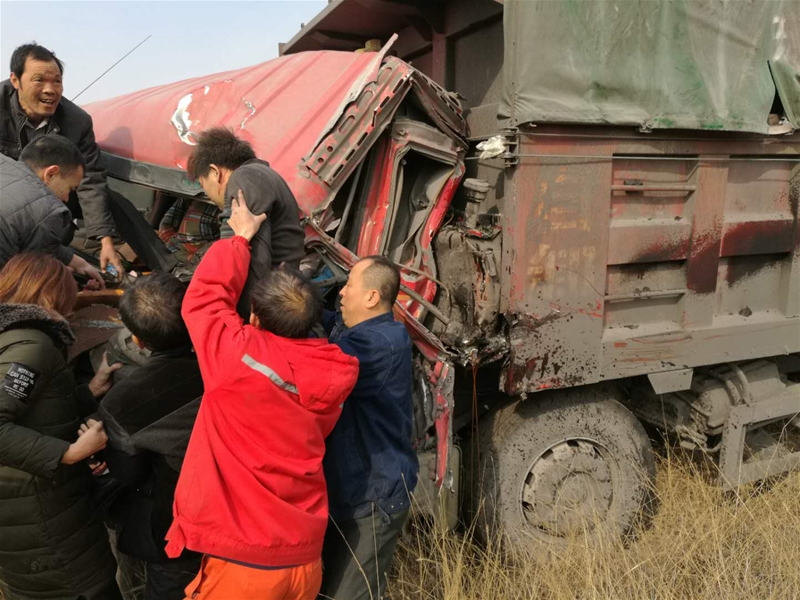 2017年11月的一天,他和同事出差前往山西省河津市對(duì)高鈣灰進(jìn)行市場(chǎng)調(diào)研。返回途中,他發(fā)現(xiàn)兩輛車(chē)因交通事故導(dǎo)致司機(jī)被擠壓在駕駛室內(nèi),一人已經(jīng)昏迷,另一人雙腿無(wú)法動(dòng)彈,頭部正在流血。他當(dāng)機(jī)立斷,喊了一嗓子“停車(chē),趕快幫忙救人!”