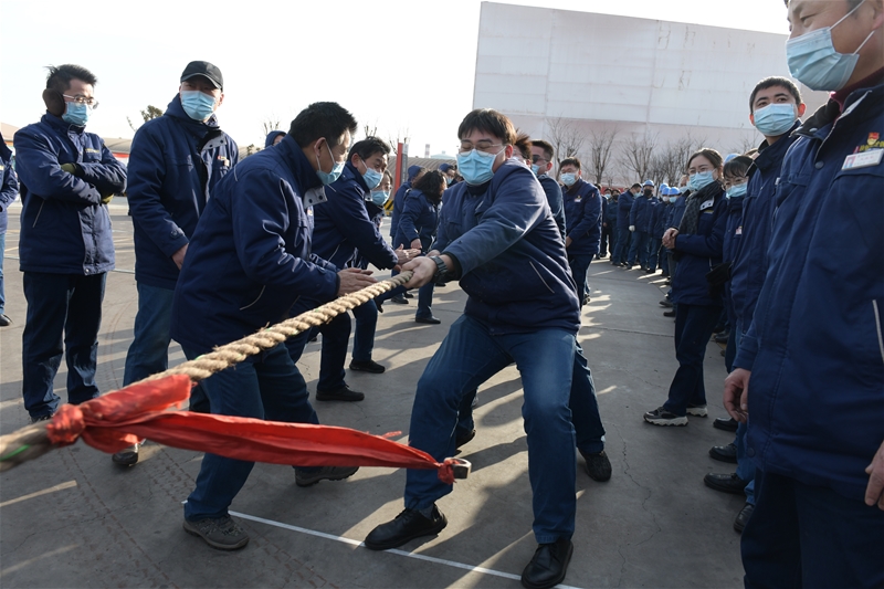 活動(dòng)分為拔河比賽和趣味活動(dòng)兩大項(xiàng)目。拔河賽中,各參賽隊(duì)員齊心協(xié)力,手握大繩雙腳抓地為團(tuán)隊(duì)爭(zhēng)榮,中間代表勝利的紅繩左右挪移牽動(dòng)著啦啦隊(duì)員的吶喊加油聲一浪高過(guò)一浪……跳大繩、摸爬滾打接力賽、巧傳呼啦圈等趣味活動(dòng)不僅考驗(yàn)著隊(duì)員的體力耐力,也進(jìn)一步增強(qiáng)了大家的凝聚力和向心力。