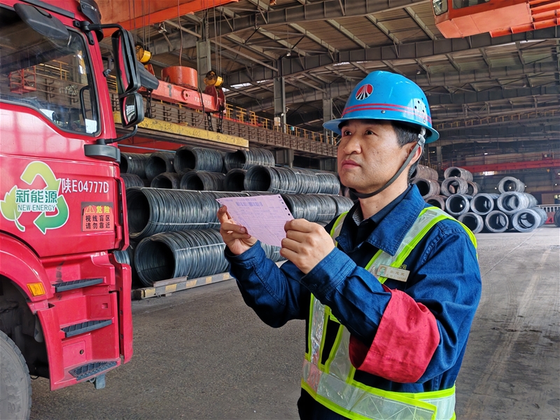 裝運鋼材出庫是軋鋼工序的最后一道關(guān)。在這個崗位上,裝車工主要對每車出庫鋼材做最后的檢驗,核對產(chǎn)品標識、每捆支數(shù)、重量、規(guī)格以及對運輸過程的防護措施等進行最后的檢查確認,確保出庫的鋼材根根是精品。同時要提前組織、合理調(diào)度車輛,加強現(xiàn)場出庫溝通,提高24小時鋼材配送到達率,及時把優(yōu)質(zhì)鋼材發(fā)送全國各地,不斷提高“禹龍”品牌服務質(zhì)效。