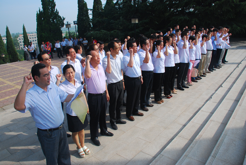 7月1日上午,為紀(jì)念中國(guó)共產(chǎn)黨建黨92年周年,陜西陜化化工集團(tuán)有限公司黨委組織公司領(lǐng)導(dǎo)班子和總經(jīng)理助理、各基層黨委、黨支部書(shū)記和新黨員到紅色教育基地——華縣高塘鎮(zhèn)渭華起義革命紀(jì)念館參觀(guān)學(xué)習(xí),并面對(duì)黨旗莊嚴(yán)宣誓,以特殊的形式迎接黨的92周歲生日。