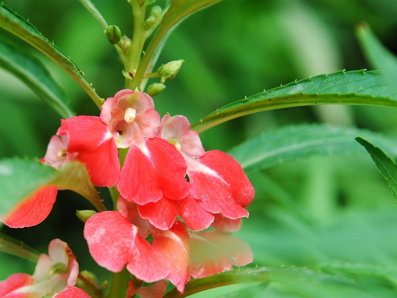 鳳仙花,實際上就是我們常叫的指甲花、染指甲花、小桃紅,因其花的頭足尾翅翹起來的樣子如鳳狀,因此稱為鳳仙花。鳳仙花的種類繁多,有大紅、粉色、粉紫色、白色等。這種花的種子生命力極其頑強(qiáng),種子遇到外力就會破裂開,漏出像小米粒大小一樣的種子。因此,鳳仙花的花語中有“別碰我”之意。然而,鳳仙花的花期比較長久,一般會從六月一直開到深秋。查閱一番資料得知它的作用也極其廣泛,除了用于風(fēng)景花觀賞,采上幾朵也可以當(dāng)做花茶泡水喝,可以治療女性的腹痛,搗爛敷在指甲上可以治療灰指甲,而指甲花的根曬干后碾成粉末狀與水沖服,可以治療跌倒損傷。