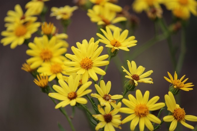 我最喜歡這個(gè)時(shí)候的故鄉(xiāng),在秋高氣爽的日子里沐浴著溫暖的陽(yáng)光,漫步在田間的小路上,欣賞山菊花那濃濃的黃,感受那一縷縷淡淡的幽香,卸掉一切工作生活的疲憊,悠哉悠哉……我喜歡跋涉在那陌生又熟悉的溝壑山梁間,欣賞山野里那盛開的山菊花,看它們不畏貧瘠,在高高的土崖邊、深深的石縫里頑強(qiáng)的綻放著。你看那一根根嬌嫩的枝桿上托著一朵朵小黃花,有仰著小腦袋向你微笑的、有歪著頭顱想著心事的、還有低著頭正在打著嗑睡的……一陣山風(fēng)吹拂而過(guò),搖曳在秋風(fēng)里的山菊花,散發(fā)出沁人心脾的菊香,此時(shí)的我就像一位世外高人醉臥山間獨(dú)享人間美景?稍谶@仙境中我心中卻有一種淡淡的憂傷襲來(lái)。因?yàn)槲业哪X海中就會(huì)浮現(xiàn)出一個(gè)頭上插滿了山菊花,手上抱著大把的山菊花,癡情于山菊花的瘋女人。她是我自家的一位嫂子。
