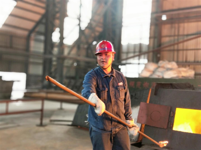 最后一站是攝影記者們向往已久的煉鋼。走進(jìn)煉鋼新區(qū),“打造中國最具競爭力的高端鋼鐵材料服務(wù)商,建成美麗幸福新陜鋼”的巨幅宣傳牌不禁讓人精神一振。當(dāng)走過爐前的“文化長廊”后,加廢鋼的斗子懸在轉(zhuǎn)爐上空,操作室內(nèi),爐長張社寧仔細(xì)地觀察著各個下料成分、重量的數(shù)字變化,看到我們來熱情地打招呼。來到連鑄機(jī)平臺,一名爐前工喊著“讓一下,小心燙”,一邊用厚厚的白手套挑著鋼釬,經(jīng)詢問原來是剛換下來的中包結(jié)晶器套管。中包工們一字排開站立在中包各流口前,操作著中包拉鋼設(shè)備,看著火紅的鋼水聽話地流進(jìn)結(jié)晶器口,前邊是鋼水的炙烤,后邊吹風(fēng)機(jī)呼呼地吹著,鐵打的人也會因為8小時的長時間站立而困乏顫抖,他們的毅力難以想象。“爐內(nèi)煉鋼,爐外練人”的傳說真是再現(xiàn)了這種情景。