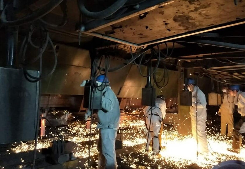 第二站來到煉鐵廠燒結(jié)作業(yè)區(qū),觀看了450工段自動化的燒結(jié)工藝流程和整齊美觀的大型燒結(jié)機(jī)臺車設(shè)備。來到主控室,操作工目不轉(zhuǎn)睛地盯著監(jiān)控大屏幕,精心監(jiān)控數(shù)據(jù)變化,“燒精品質(zhì)礦,做有素養(yǎng)人”的紅色標(biāo)語樹立在白色的瓷磚墻上,大屏幕上方“固燃單耗70㎏/t,電單耗44Kwh/t,五月份產(chǎn)量及成本……”的紅色游飛字幕來回滾動,展示著煉鐵人不斷提升燒結(jié)礦石品質(zhì)的決心和信心?吹竭@些精心工作的煉鐵人,我們都不忍打擾,快速按下幾個快門,記錄下這追趕超越路上那感人的瞬間。