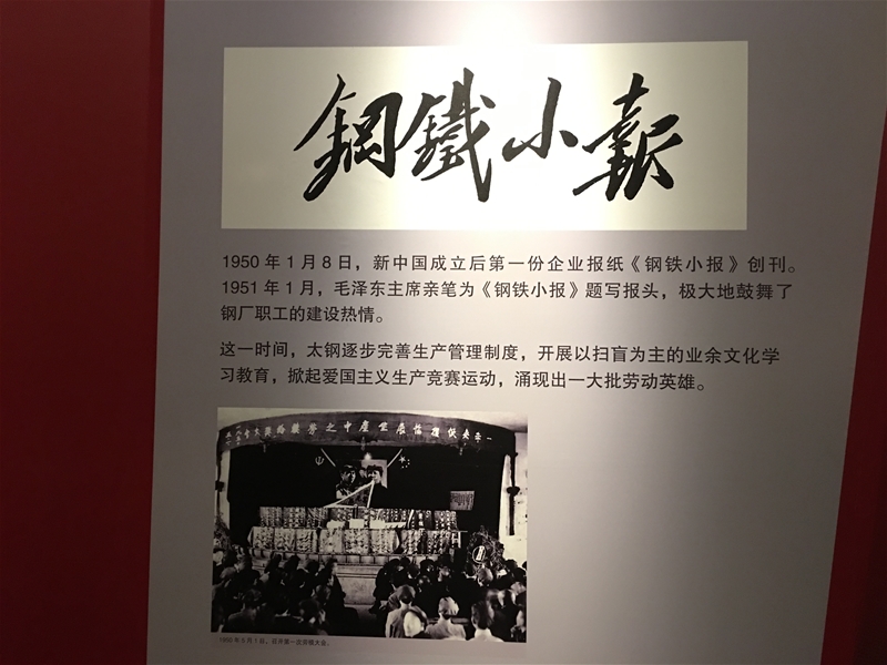 在“太鋼杯”全國(guó)冶金美術(shù)書法展覽上,得以觀賞來(lái)自四十余家冶金單位職工創(chuàng)作的油畫、國(guó)畫、版畫、真草行篆各類作品,讓人真切享受到一道文藝精神大餐。在太鋼廠史展覽館,代表們進(jìn)入了一場(chǎng)八十四年的時(shí)光之旅。仿制的青磚灰瓦的西北鋼鐵廠大門,孫中山、閻錫山先生的黑白影像,瞬間將人拉回到實(shí)業(yè)興華、產(chǎn)業(yè)報(bào)國(guó)的上世紀(jì)初。毛澤東曾為全國(guó)第一份企業(yè)報(bào)紙,即太鋼《鋼鐵小報(bào)》題寫報(bào)名,令人對(duì)太鋼新聞事業(yè)的歷史心生幾分羨慕。館內(nèi)的珠港澳大橋、軍艦、坦克、神舟三號(hào)、圓珠筆芯頭、手撕鋼等等元素,讓人更加驚嘆于太鋼產(chǎn)品在科技上的先進(jìn)實(shí)力。