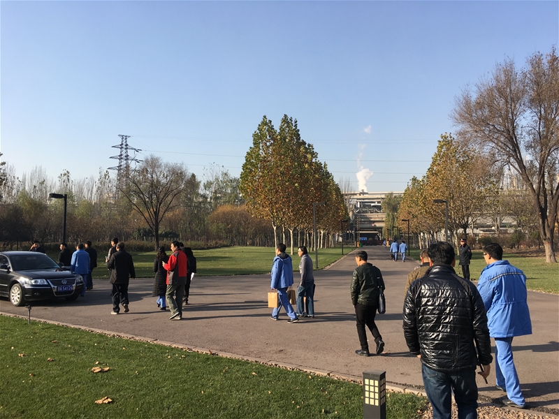 活動(dòng)期間,90余名代表共同出席了太鋼杯全國(guó)冶金行業(yè)職工美術(shù)書法作品展覽開幕式,參觀了位于廠區(qū)內(nèi)的太鋼博物園及廠史展覽館。進(jìn)入廠區(qū),白色外墻的生產(chǎn)車間掩映在高低錯(cuò)落樹木植物之間,潔凈寬敞的柏油路上,各色線條清晰,機(jī)動(dòng)車道與非機(jī)動(dòng)車道分線而行,白色燈桿上,懸掛著勞動(dòng)光榮、勞動(dòng)偉大之類的文化標(biāo)語(yǔ),職工們身著淺藍(lán)色的工作服,愜然自信的行走。廠區(qū)噪音很小,完全感受不到工業(yè)生產(chǎn)對(duì)環(huán)境的破壞干擾。相反,倒覺得仿佛是進(jìn)入了一座城市公園。十里鋼城完全與自然環(huán)境和諧一體,與城市和諧一體。