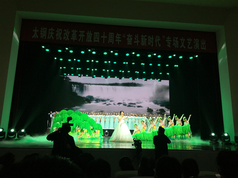 如果說(shuō)參觀活動(dòng)是開胃菜,其后的太鋼慶祝改革開放四十周年奮斗新時(shí)代專場(chǎng)文藝演出,則更讓代表們感受到太鋼職工深厚壯美的精神底蘊(yùn)。開場(chǎng)節(jié)目《黃河鼓韻》把觀眾帶入到大浪滔滔、奔騰呼嘯的黃河壺口,黃土高原的古謠,把人們的神思帶到了磅礴廣闊的黃河呂梁。鼓槌輕擊,似安靜水流;鼓槌揚(yáng)起,似萬(wàn)滔奔鳴。傳統(tǒng)鼓樂竟如歌如訴,編排之美妙使人心曠神怡。太鋼職工表演的群口快板節(jié)目,把太鋼四十年發(fā)展變化巧妙穿插在丈母娘與四個(gè)女婿的笑語(yǔ)對(duì)話中,又見匠心之妙。所有的節(jié)目編排精美,大氣沉美,充分展示了太鋼職工高品位的文藝素養(yǎng),文明禮儀的深厚積淀,折射出太鋼職工對(duì)于生活的熱愛,對(duì)于真善美的藝術(shù)追求,以及太鋼職工雙手創(chuàng)造的幸福文化生活。詢問得知,太鋼文藝協(xié)會(huì)有作協(xié)、美協(xié)、書法、攝影、舞蹈、體育等八個(gè)分會(huì)之多,文藝人才門類齊全,文藝活動(dòng)豐富多彩。