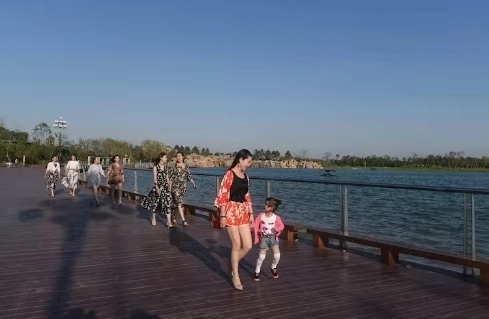 湖堤上,有幼兒牽著媽媽的手,姍姍學(xué)步;有情侶手拉著手,走著笑著;有年長者推著輪椅,載著老伴,緩緩前行……湖邊小廣場上,忽聽得鼓樂聲響起。那是來湖邊休閑的市民和游客們正在欣賞著自樂班的秦腔表演,動情處,掌聲雷動,喝彩聲不斷。恬靜而不失動感,靈秀中透出質(zhì)樸,顯現(xiàn)了北方地域的獨(dú)特景致,動靜交融,渾然一體。