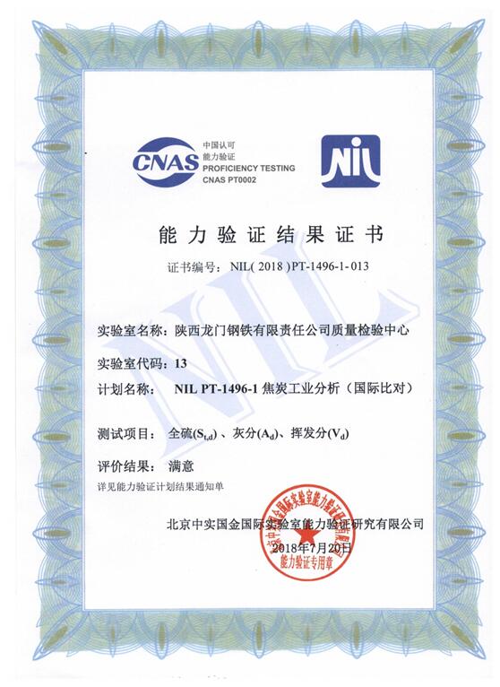 7月22日龍鋼公司質(zhì)量檢驗中心焦炭工業(yè)分析能力驗證項目喜獲國際“滿意”結(jié)果,焦炭工業(yè)分析是公司繼“NIL PT-1436-1用火花源原子發(fā)射光譜法測定低合金鋼中化學(xué)成分(國際比對)”5個參數(shù)全部獲“滿意”結(jié)果后第二個順利通過能力驗證的項目,灰分、揮發(fā)分、全硫三個參數(shù)再次全部為“滿意”結(jié)果。