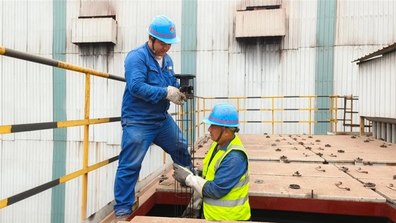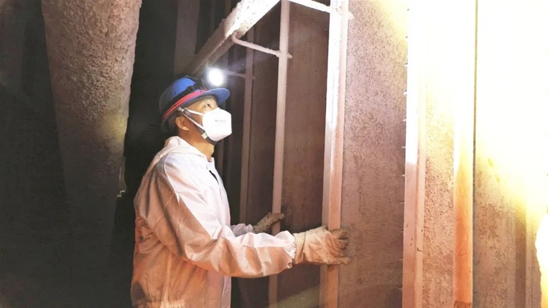 “此次檢修,對容易發(fā)生故障的部位要仔細(xì)檢查,一定要確保檢修質(zhì)量。”電除塵人孔門前的平臺上,環(huán)保維修班長閆剛強正在對即將進入電場檢查的工作人員進行技術(shù)和安全交底。