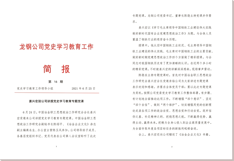 龍鋼公司《黨史學(xué)習(xí)教育工作簡報(bào)》 第16期