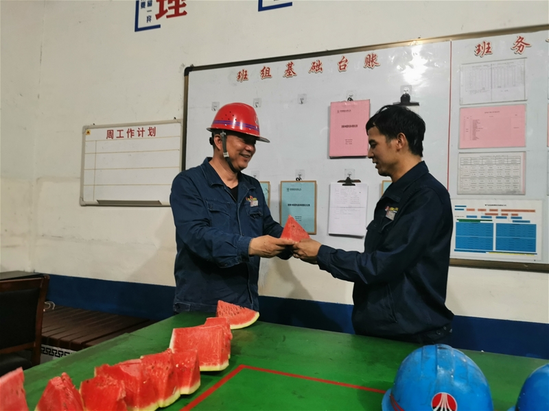 該黨支部堅持“以人為本,服務職工”的宗旨,切實將黨史學習教育轉化為服務基層一線的實際行動,全心全意為職工辦實事、辦好事。為做好夏季安全生產和勞動保護工作,落實好防暑降溫措施,成立了送清涼工作小組,深入一線為職工送上西瓜、毛巾、飲料、雪糕、綠豆湯等。每到一處,該單位領導班子都與職工進行交流,了解職工生活、工作中需要解決的難點問題。一瓶水、一塊西瓜微不足道,卻讓一線職工在高溫下感到絲絲涼意,雖沒有華麗的語言,卻讓工友們切實感受到一股暖意。
