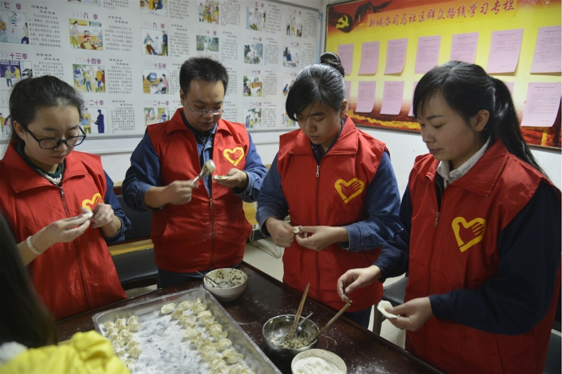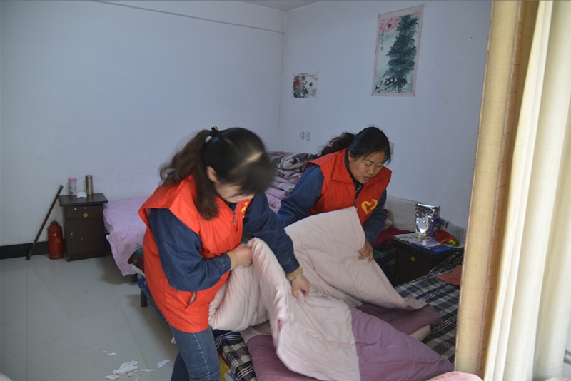 走進(jìn)敬老院,志愿者們首先為老人送上了牛奶、水果和糕點(diǎn)等營養(yǎng)品,隨后,自由分組開展活動,第一小組廚房幫廚,志愿者們和廚師一起為老人包餃子,和面、剁餡、拌餡、搟面皮、捏餃子……他們分工明確,相互協(xié)作,一切進(jìn)行的有條不紊。第二小組整理內(nèi)務(wù),他們挽起袖子,拖地、擦桌子、整理床鋪,不一會兒,敬老院的一切就井井有條呈現(xiàn)在老人面前。第三小組互動談心。志愿者們和老人圍坐在一起,手拉手噓寒問暖,了解老人的飲食起居和健康狀況。一名志愿者還為老人講述了春季養(yǎng)生知識,告訴他們要注意保暖、保證睡眠、合理膳食、加強(qiáng)鍛煉,還要保持良好的心情和精神狀態(tài);顒又,志愿者們還為老人們送上了獨(dú)唱《媽媽的吻》、《小城故事》,舞蹈《感恩的心》、《北京的金山上》等娛樂節(jié)目,精彩紛呈的節(jié)目為敬老院增添了許多歡快喜慶色彩,獲得了敬老院老人的陣陣熱烈掌聲。歡聲笑語中,第一小組已經(jīng)將熱氣騰騰的餃子端上了餐桌,大家將老人們攙扶到飯桌旁,看著他們大口大口吃著香噴噴的餃子,志愿者們個個臉上都露出了開心的笑容。